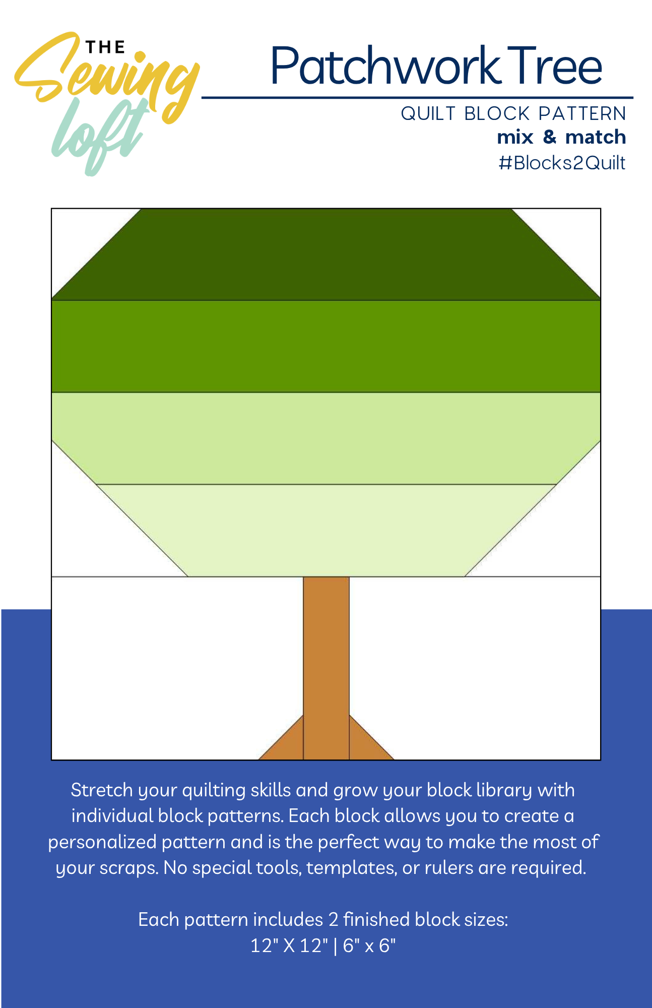 Each professionally printed 5.5" x 8.5" pattern booklet includes step-by-step, full-color instructions and cutting guides for two finished sizes: 6" and 12" blocks. Whether you're highlighting holiday fabrics or using up seasonal scraps, this tree block is a great way to bring a touch of nature to your quilting projects.