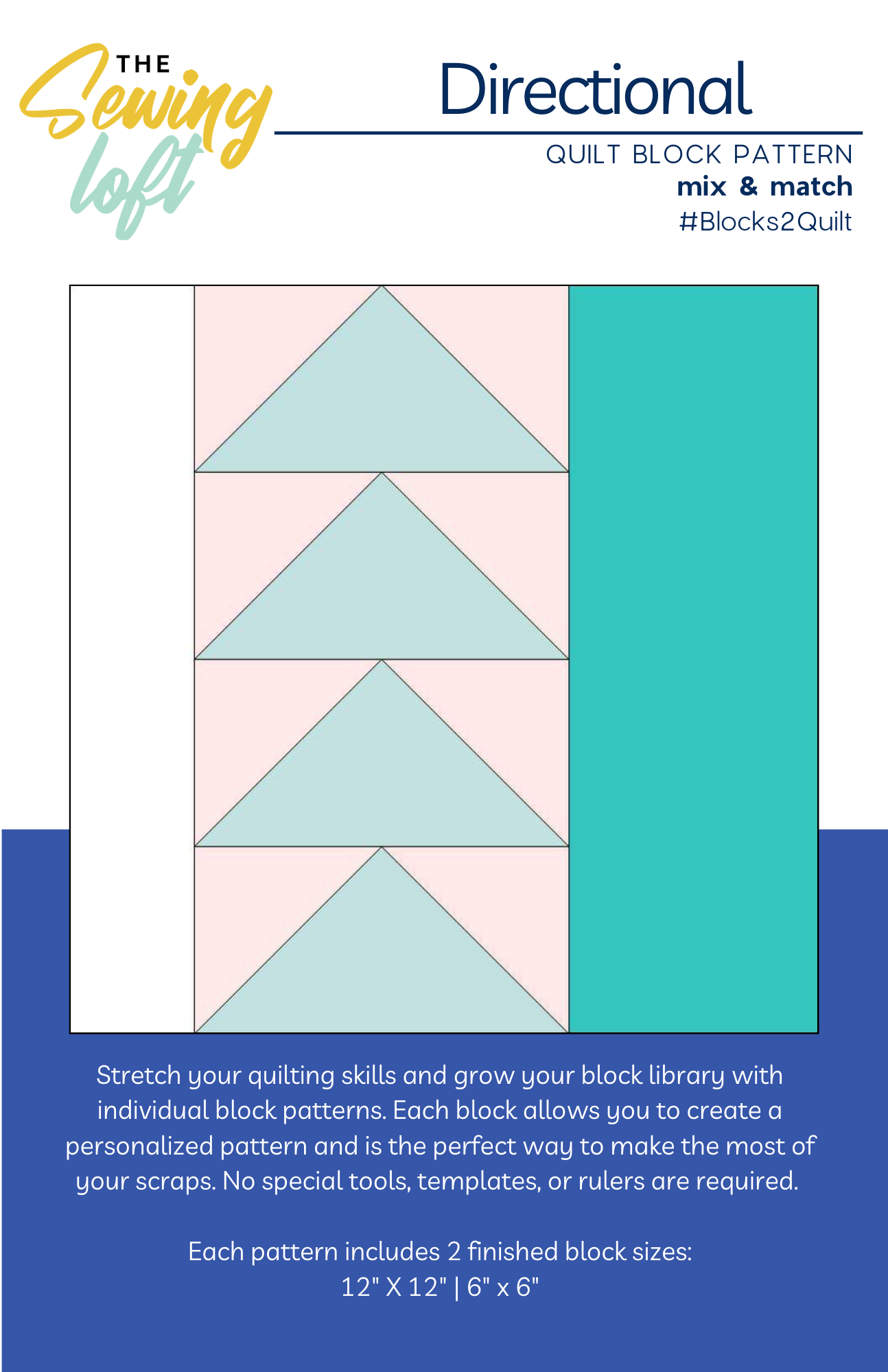 - Finished block sizes: 6" and 12"