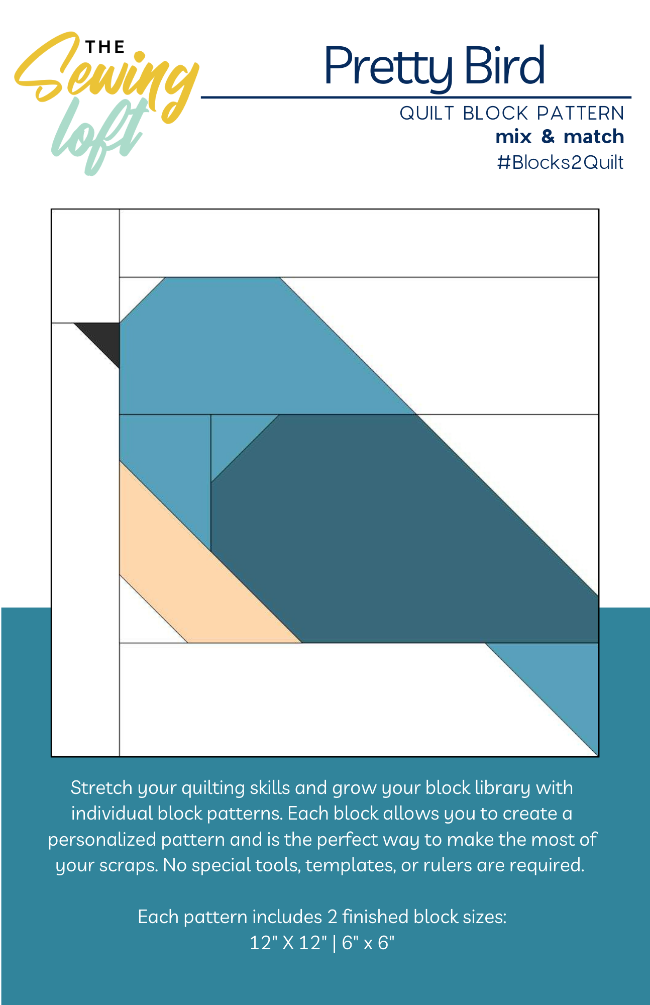 Let your creativity take flight with the Pretty Bird quilt block! This charming design is perfect for nature lovers, springtime projects, and whimsical quilts. Customize your bird by stitching it in the colors of your state bird for a personal touch! Whether you're creating a quilt full of feathered friends, adding a pop of nature to your decor, or making a sweet nursery accent, this block is sure to delight.