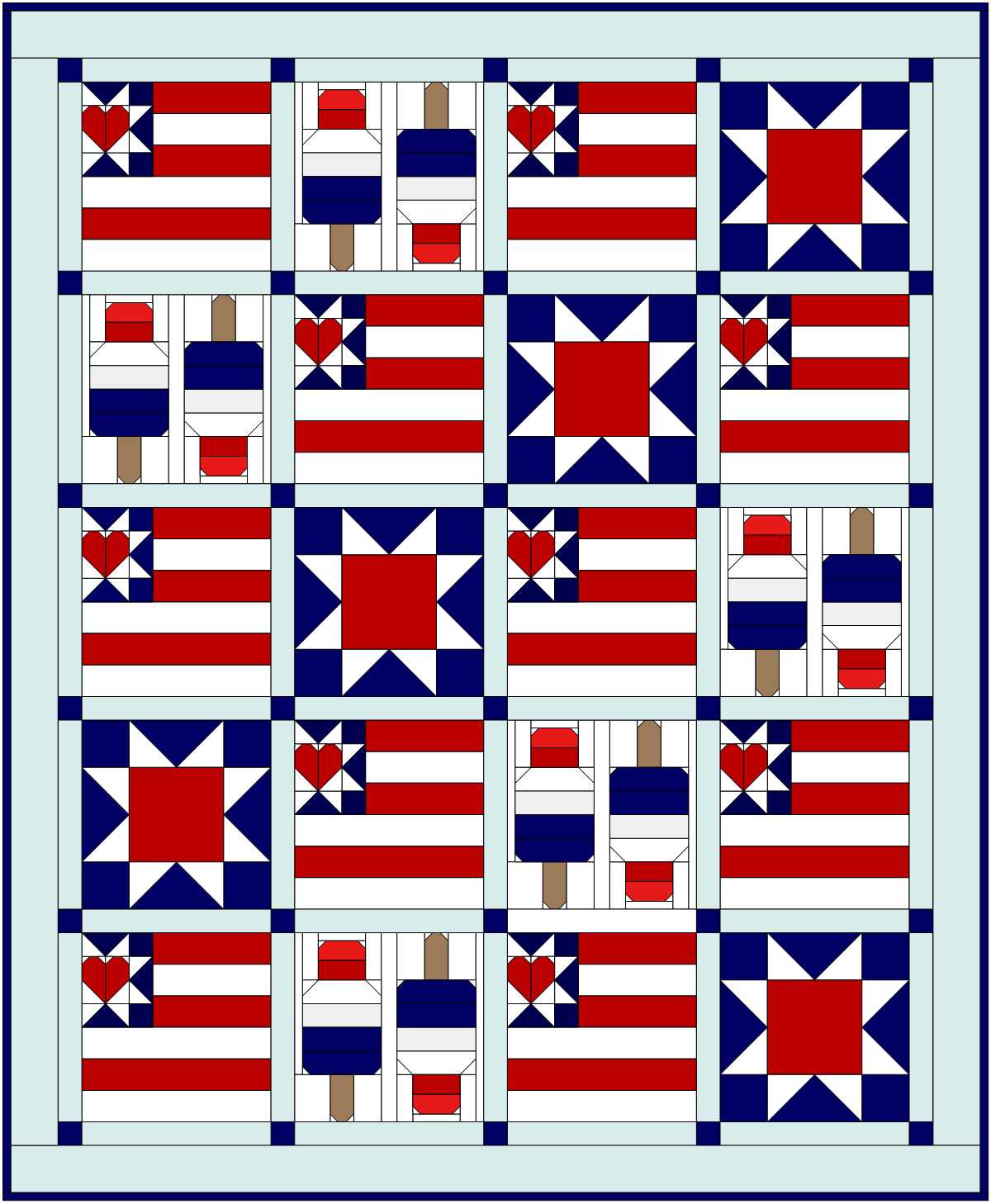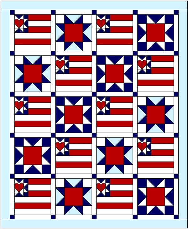 The printed pattern includes full-color, step-by-step instructions and cutting guides for two finished block sizes: 6" and 12", It's beginner-level and fat quarter and scrap friendly, making it easy to add a patriotic touch to your quilts, wall hangings, or table decor.